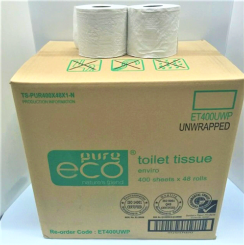 BOX 48 X 400S ROLLS PUREECO 2PLY TOILET TISSUE-UNWRAPPED